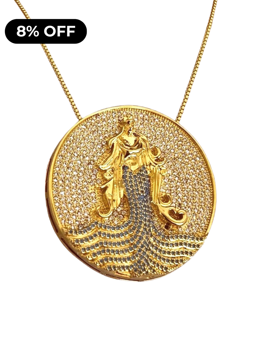 Kit Pingente Mandala Grande Iemanjá Banhada a Ouro 18k e Cravejada C/ Microzircônias Cristal + Corrente Veneziana 60cm