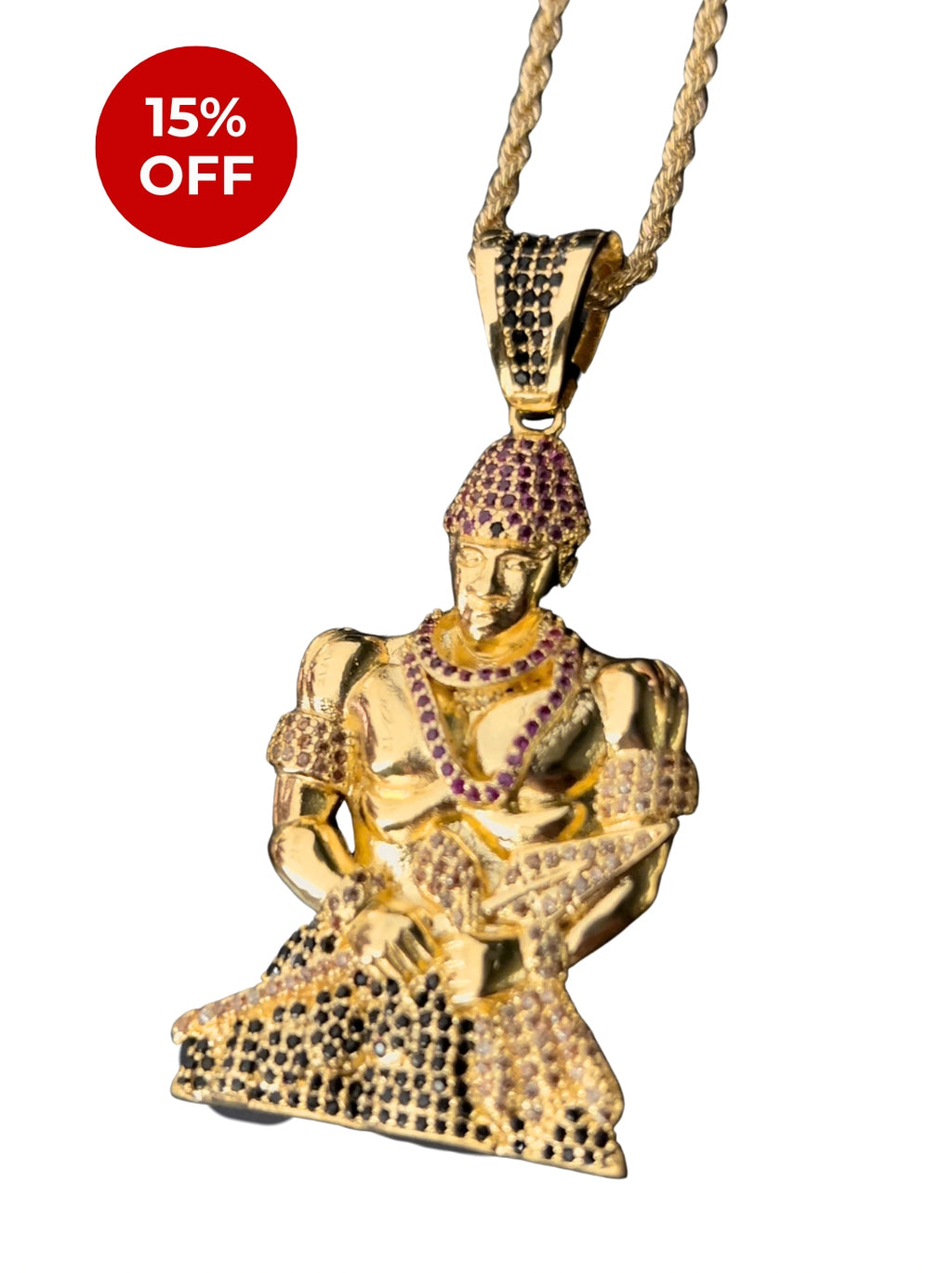 Kit Pingente Orixá Exu Banhada a Ouro 18k e Cravejada C/ Micro Zircônias + Corrente Cordão Baiano (1 mm) 65cm
