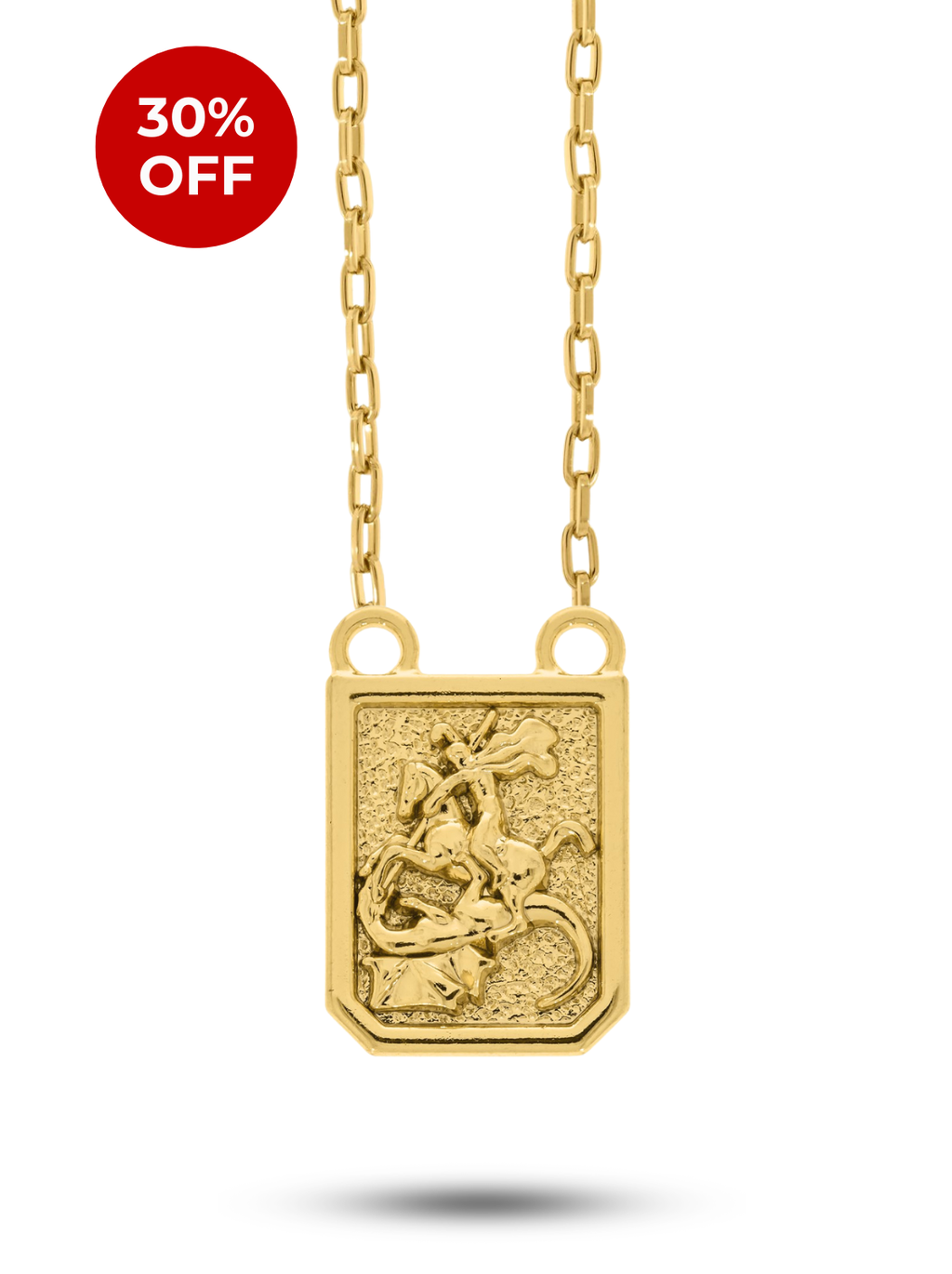 Escapulário São Jorge (22mm) + Corrente Cadeado (2mm) de 60 ou 70 cm - Banhado a Ouro e Verniz Italiano