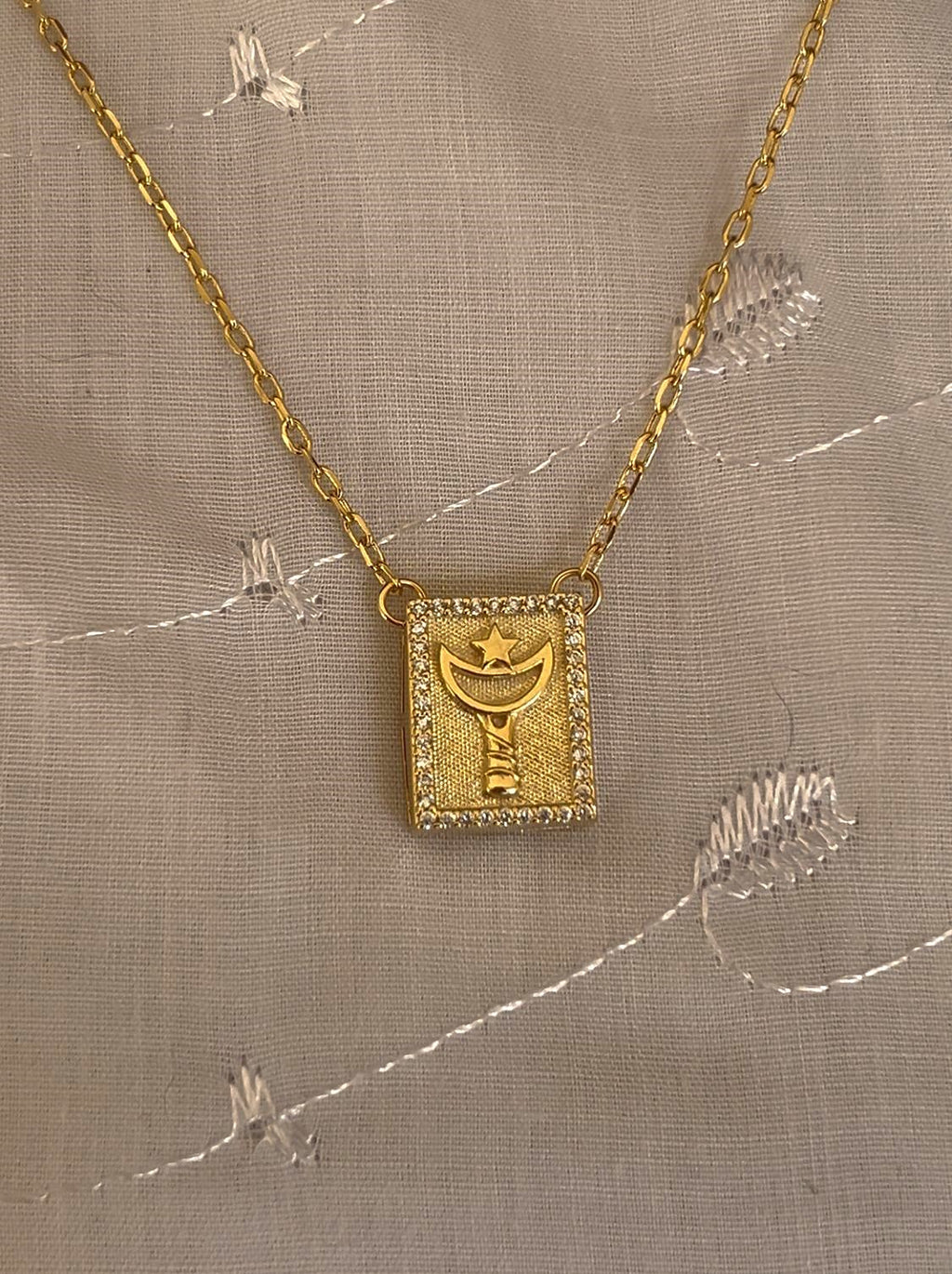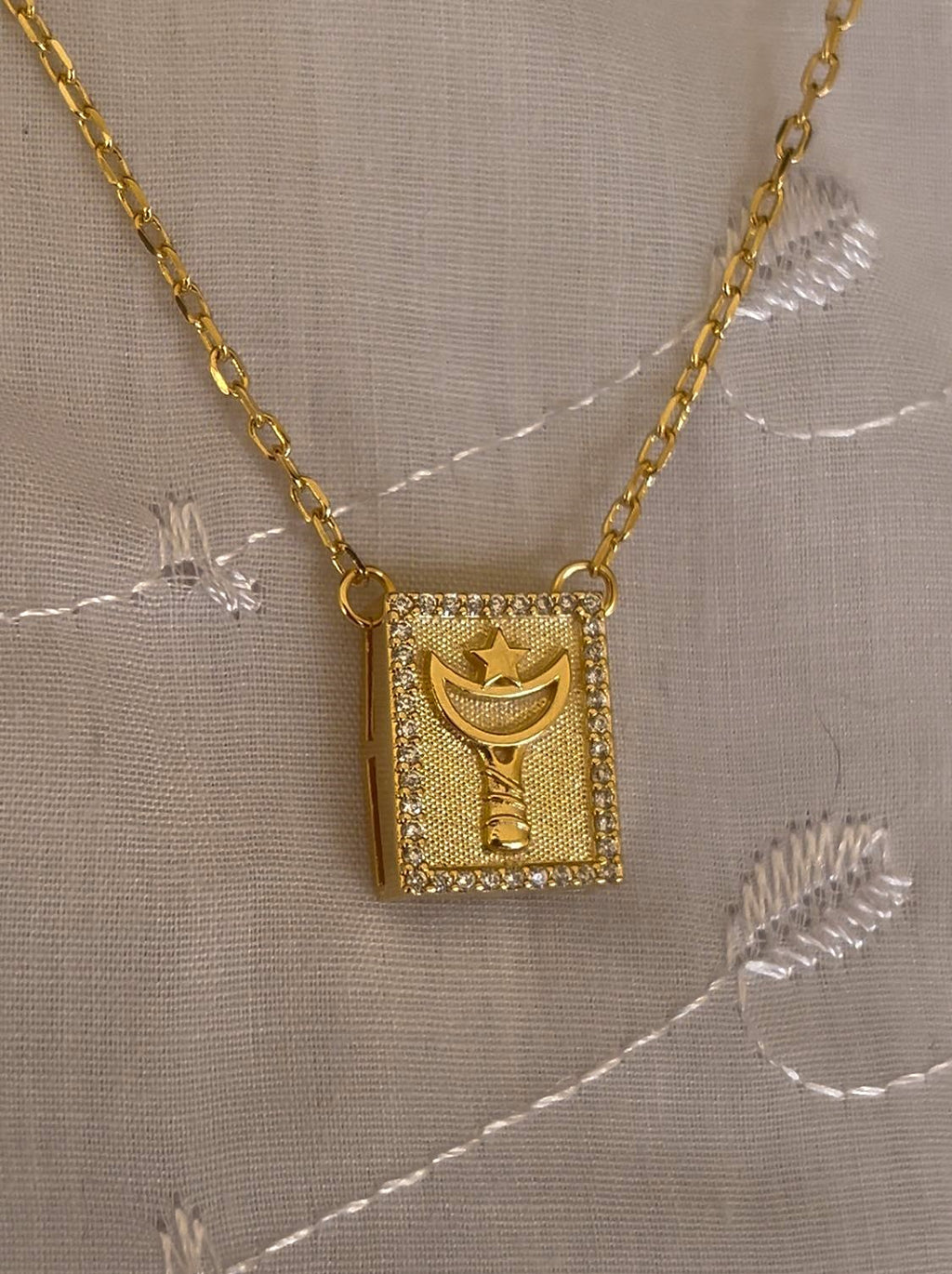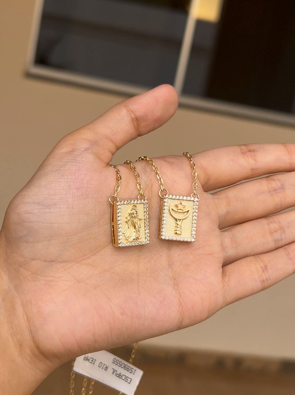 Escapulário Caixa Orixá Iemanjá C/ Microzirconia Cristal Banhada a Ouro 18k + Corrente Cadeado (1 mm) 70cm