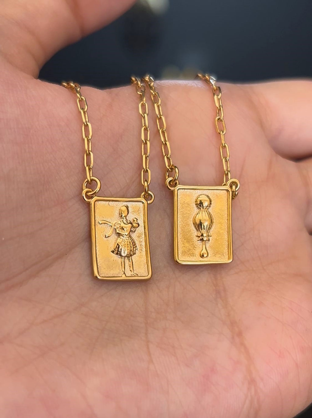Escapulário Placa Orixá Ewa Banhada a Ouro 18k + Corrente Cadeado (1 mm) 70cm