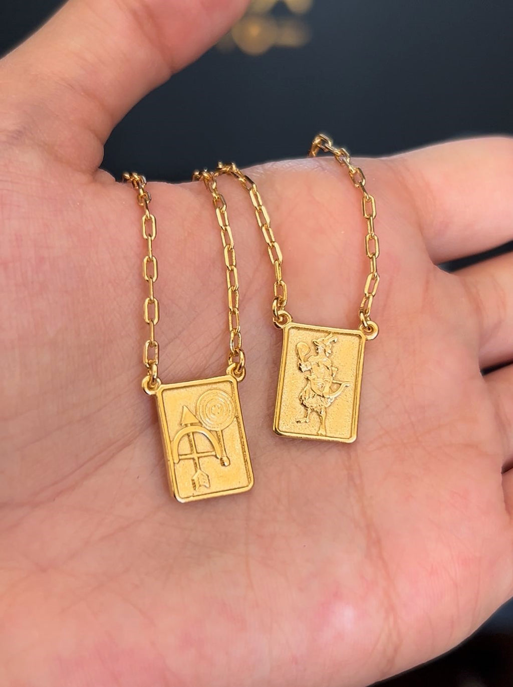 Escapulário Placa Orixá Logun Edé Banhada a Ouro 18k + Corrente Cadeado (1 mm) 70cm