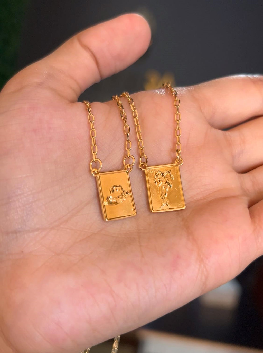 Escapulário Placa Zé Pilintra Banhada a Ouro 18k + Corrente Cadeado (1 mm) 70cm