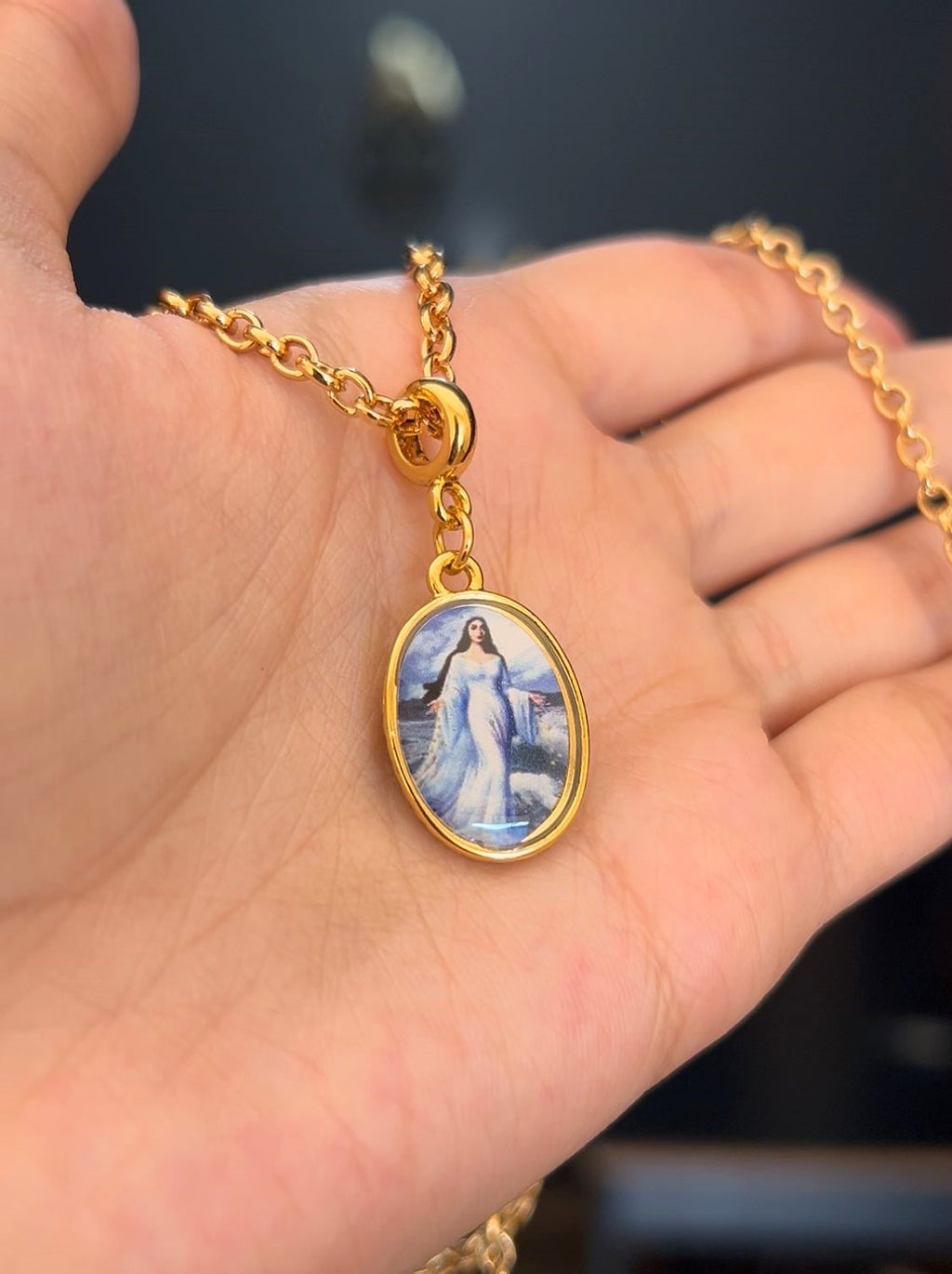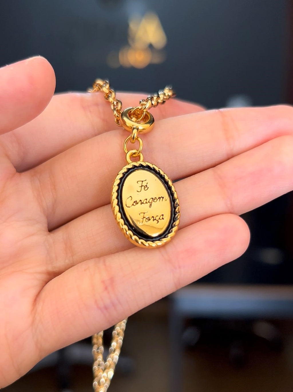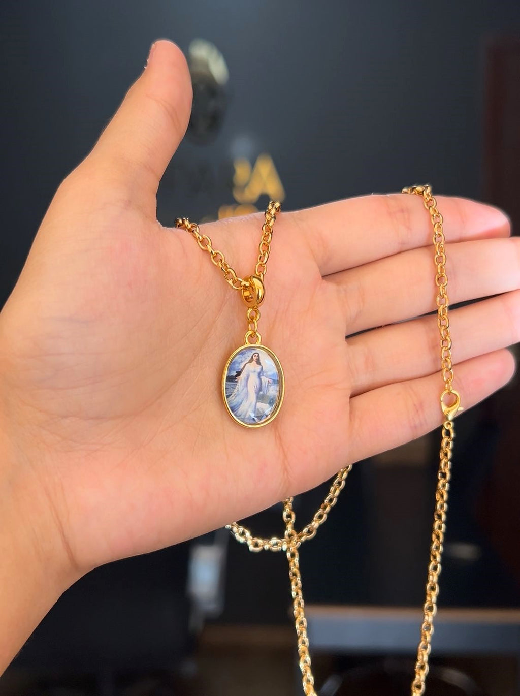 Kit Pingente Iemanjá (23mm) + Corrente Elo Português (1,5mm) 60 cm ou 70 cm - Banhada a Ouro e Verniz Italiano