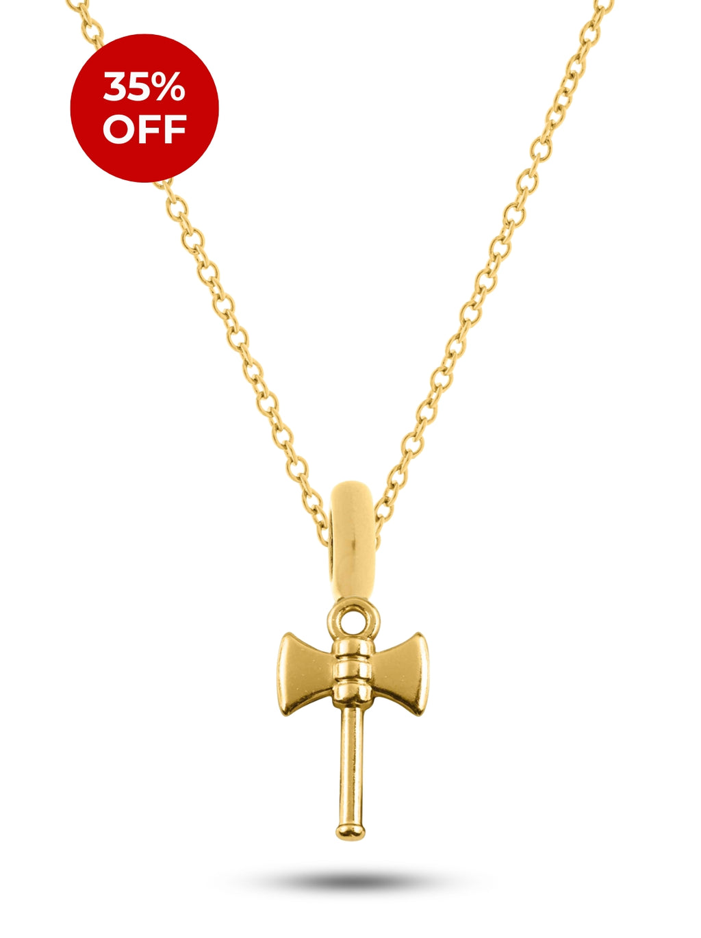 Kit Pingente Machado de Xangô (19mm) + Corrente Elo Português (1mm) de 50, 60 ou 70 cm - Banhada a Ouro e Verniz Italiano